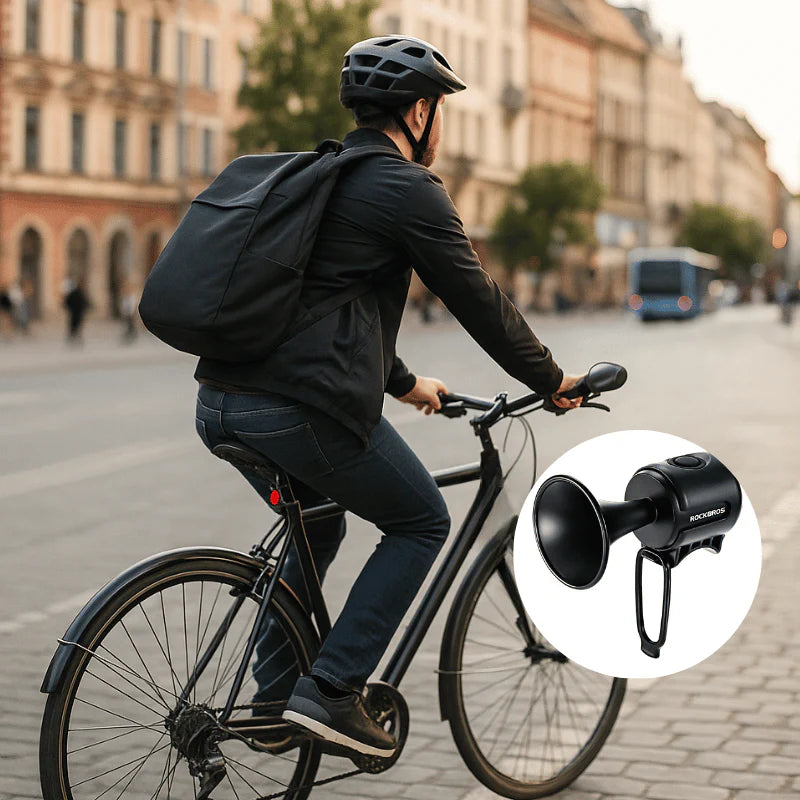 Ride safe and stay heard with this ultra-compact but incredibly powerful bike bell. Delivering up to 120 decibels, it cuts through traffic, noise and distractions, making you instantly noticeable to cars and pedestrians. With 6 alarm modes, you can adapt your signal to any situation — from busy city streets to silent countryside lanes.
