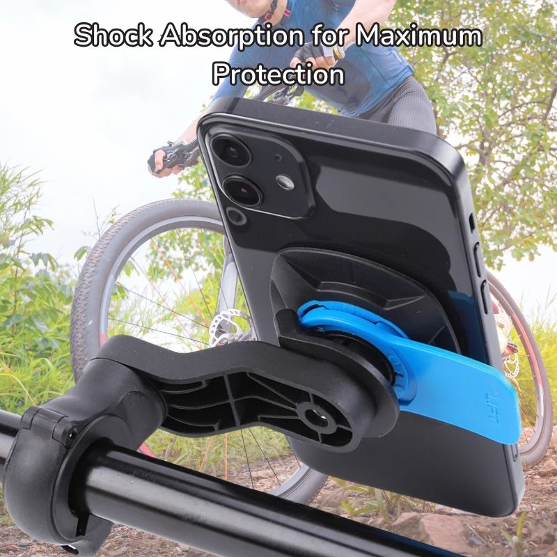 ✔ Shock‑absorbing mount keeps your phone steady on bumpy rides